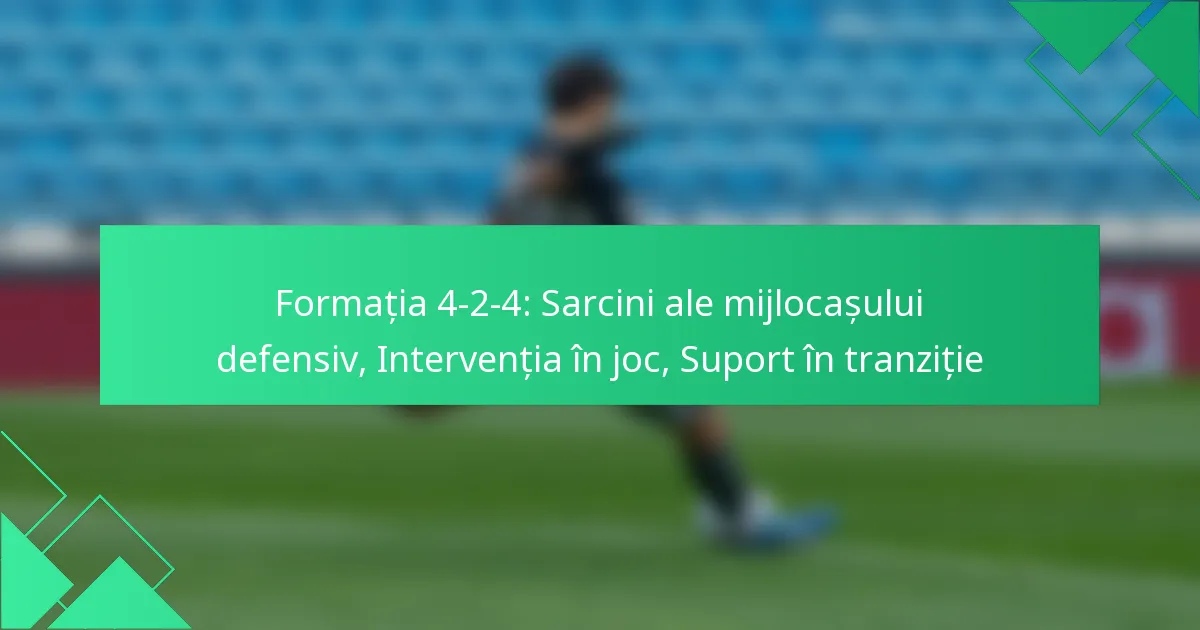 Formația 4-2-4 este un sistem tactic în fotbal care echilibrează puterea ofensivă cu stabilitatea defensivă. În cadrul acestei structuri, mijlocașul defensiv este esențial pentru a întrerupe jocurile adversarilor și a facilita tranziții fluide de la apărare la atac. Responsabilitățile lor includ interceptarea paselor, executarea tackle-urilor și poziționarea strategică pentru a menține controlul asupra jocului.