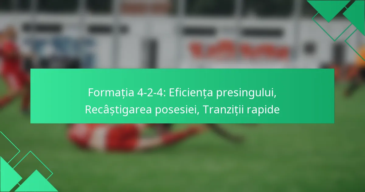 În formația 4-2-4, strategiile eficiente pentru recâștigarea posesiei se concentrează pe presing, interceptare și tranziții rapide. Echipele utilizează tehnici specifice și roluri ale jucătorilor pentru a întrerupe jocul adversarilor și a recupera mingea eficient.