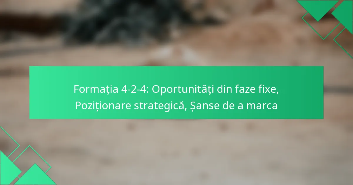 Optimizarea oportunităților din fazele fixe în formația 4-2-4 implică poziționarea strategică și roluri clare pentru jucători în timpul cornerelor, loviturilor libere și aruncărilor de la margine. Prin valorificarea punctelor forte ale acestei formații, echipele pot crea șanse de marcaj eficiente și pot profita de slăbiciunile defensive.